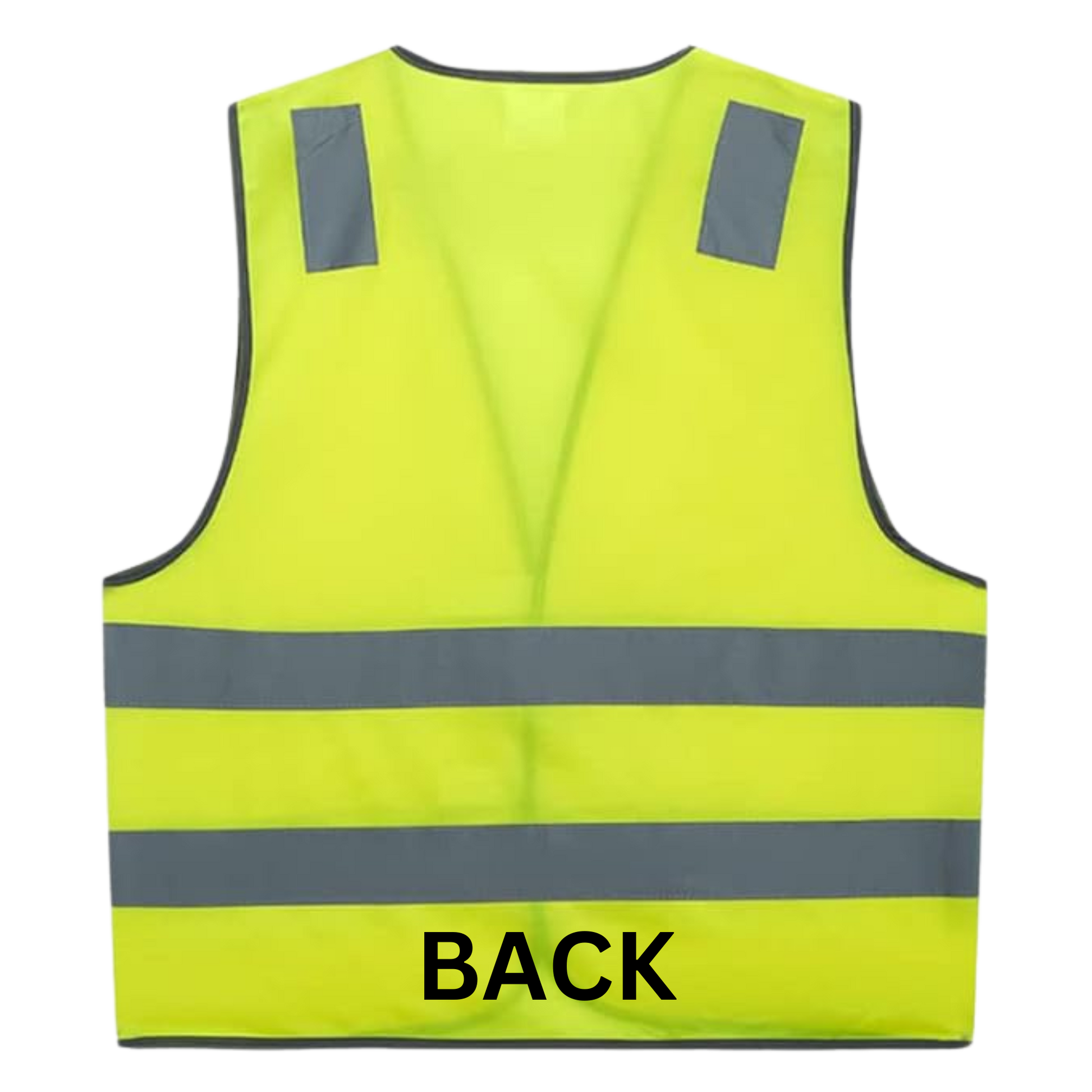 Stay safe and stand out with our high-visibility Custom Safety Vests, perfect for construction sites, event staff, and more. Each vest includes your custom logo or wording, with additional design placement available for an added fee.